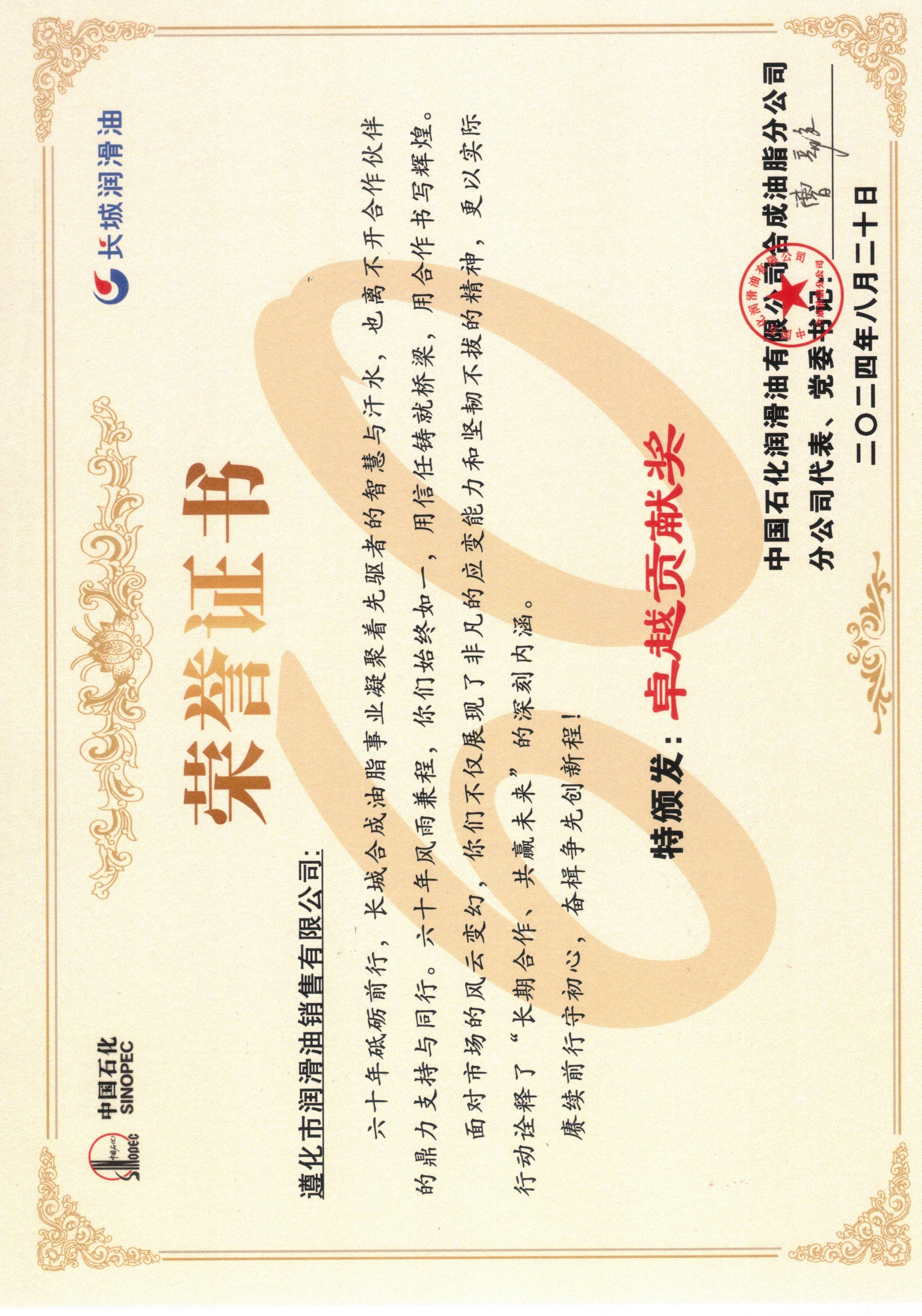 中石化恒運(yùn)優(yōu)秀新客戶獎(jiǎng)